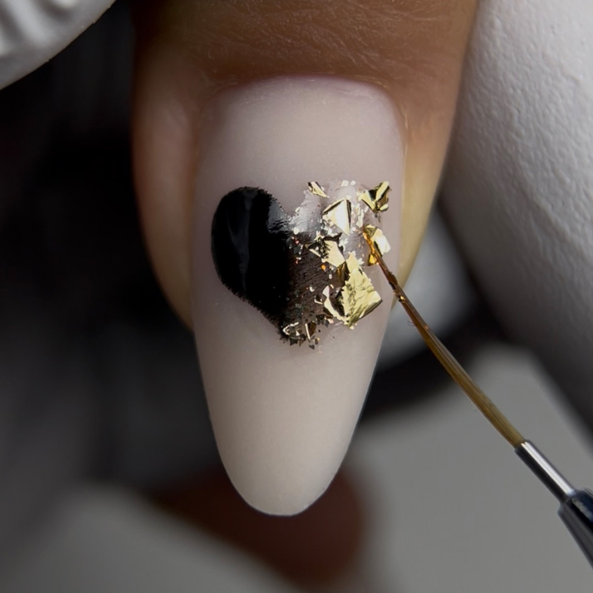 Paint half of a heart using black gel polish.